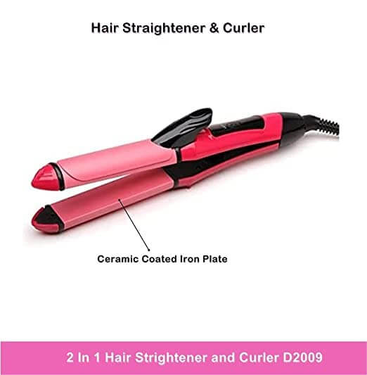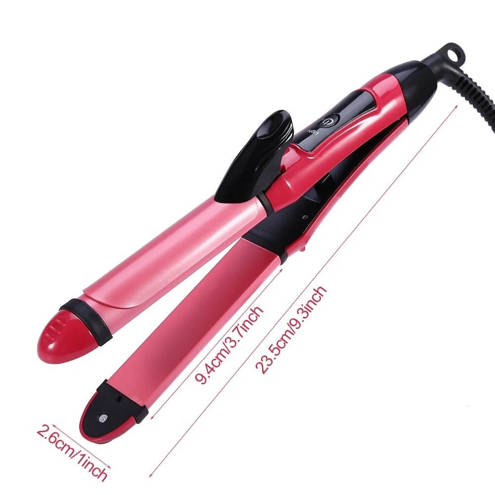 2-in-1 Hair Curler & Straightener – Sleek Pink Design